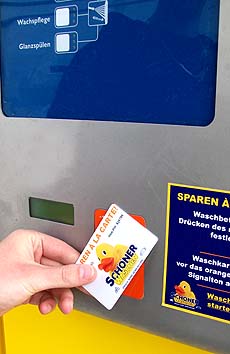 Waschen Sie bargeldlos mit Ihrer persönlichen Schöner Waschen-Karte! Sparen Sie bares Geld, praktisch á la carte! Einfach Waschkarte am Kassen-Automaten oder im Shop mit dem gewünschten Betrag mit der EC-Karte oder Bar aufladen und sparen!